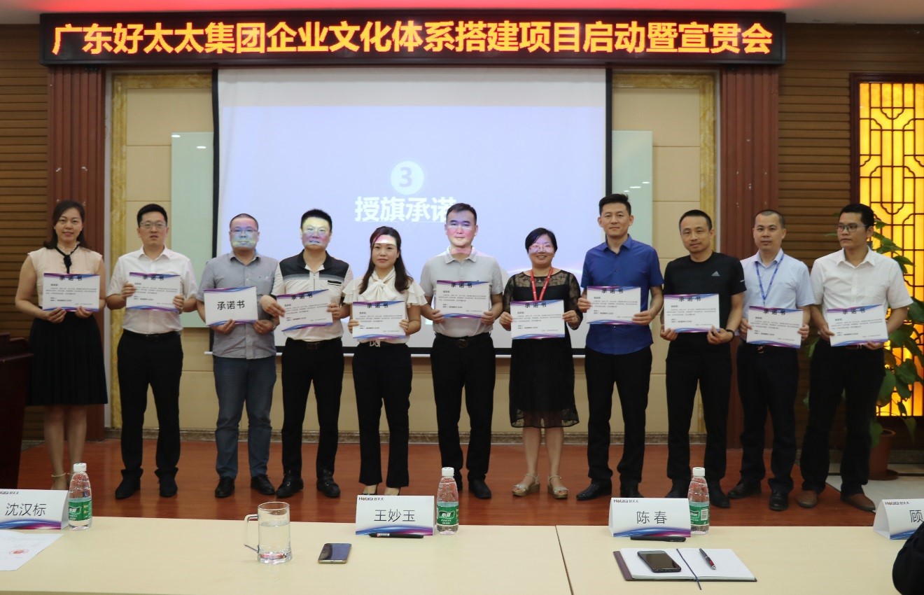 5月28日對于好太太來說是個特殊的日子,下午兩點由商學院主辦的企業文化體系搭建項目啟動會在好太太培訓室成功舉行。本次活動出席的嘉賓有集團董事長沈漢標、集團總裁兼商學院院長王妙玉、集團副總經理侯總、集團營銷總經理陳總、中大咨詢企業文化事業部總監蔡占明等。本次啟動會不僅希望大家對企業文化的價值和意義以及整體建設全過程有基本的認知和理解,對整個項目保持思想統一,高度重視;更希望在未來的體系搭建項目開展過程中,各部門能夠積極配合、全力支持,通過明確目標,各部門共同推動項目的順利完成,并激發大家的熱情及內心的責任感與使命感。