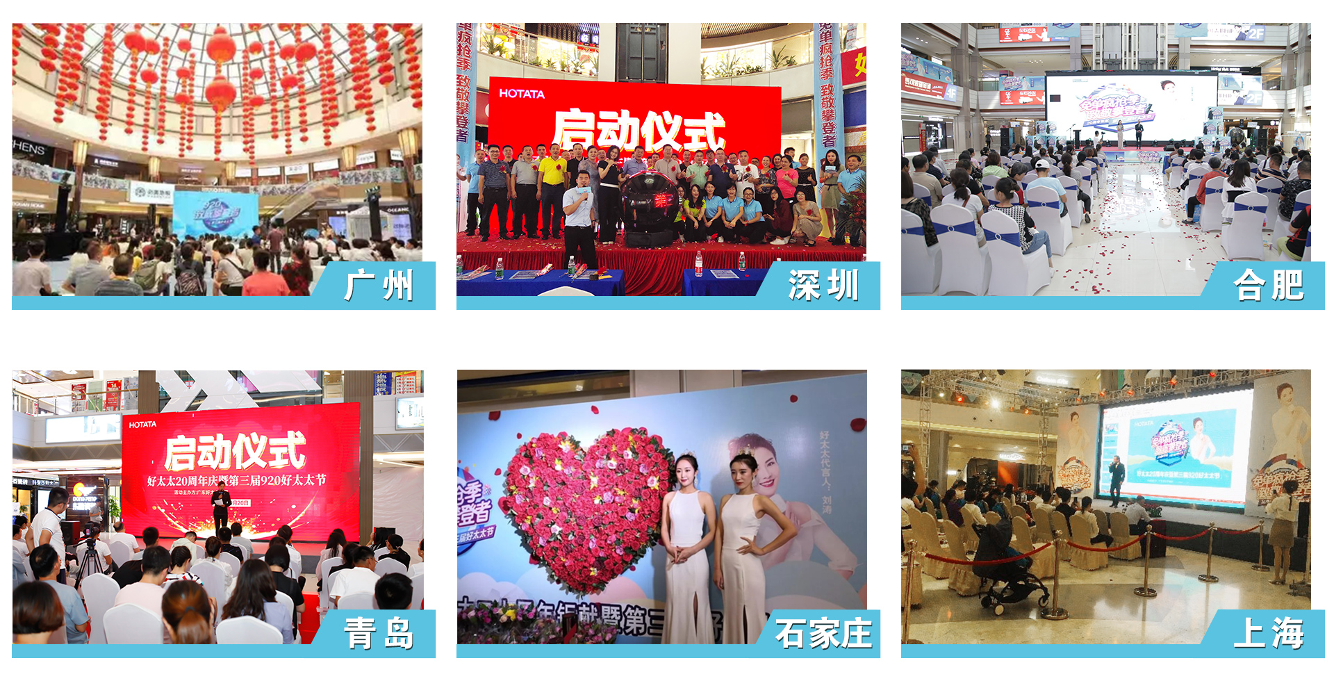 廣州、深圳、合肥、青島、石家莊、上海六城聯動共慶920好太太節,各地活動現場氣氛熱鬧。 廣州主會場大咖云集,共度浪漫節日之約;深圳分會場選在福田區樂安居舉行,與在場來賓徜徉在玫瑰海洋里,深情祝福與表白身邊的好太太;合肥會場以玫瑰花傳情,每一片玫瑰花瓣代表最美好的寄語,贊美她力量,贊美溫柔又堅定的新女性;青島場的活動熱鬧非凡,歌手現場互動,共同慶祝好太太節的節日盛典;石家莊會場萬朵玫瑰現場派發,為女性帶來最誠摯的祝福;上海會場主打溫情路線,現場人員對身邊的好太太表達了感謝之情,并贈送玫瑰。