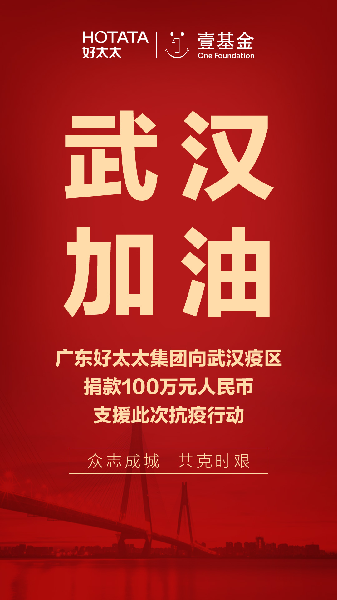 新型冠狀病毒疫情天天都在變化,牽動著每一個中國人的心,疫情當(dāng)前,舉國抗擊,好太太集團在行動!1月28日,好太太集團攜手壹基金馳援武漢捐款100萬,捐助款項將用于此次肺炎防控的相關(guān)措施。
