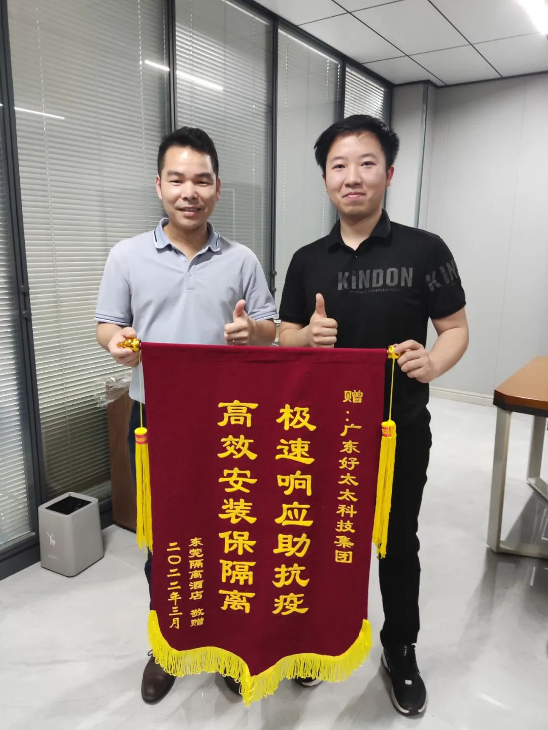 接到項目以來,好太太集團堅守在抗疫一線,與東莞市政府、市衛健委齊心協力,克服重重困難,將980套晾衣機的交付周期由原來的半個月,保質保量地壓縮至一周!為隔離人員提供多一分舒適體驗,為防疫工程貢獻自己的力量!