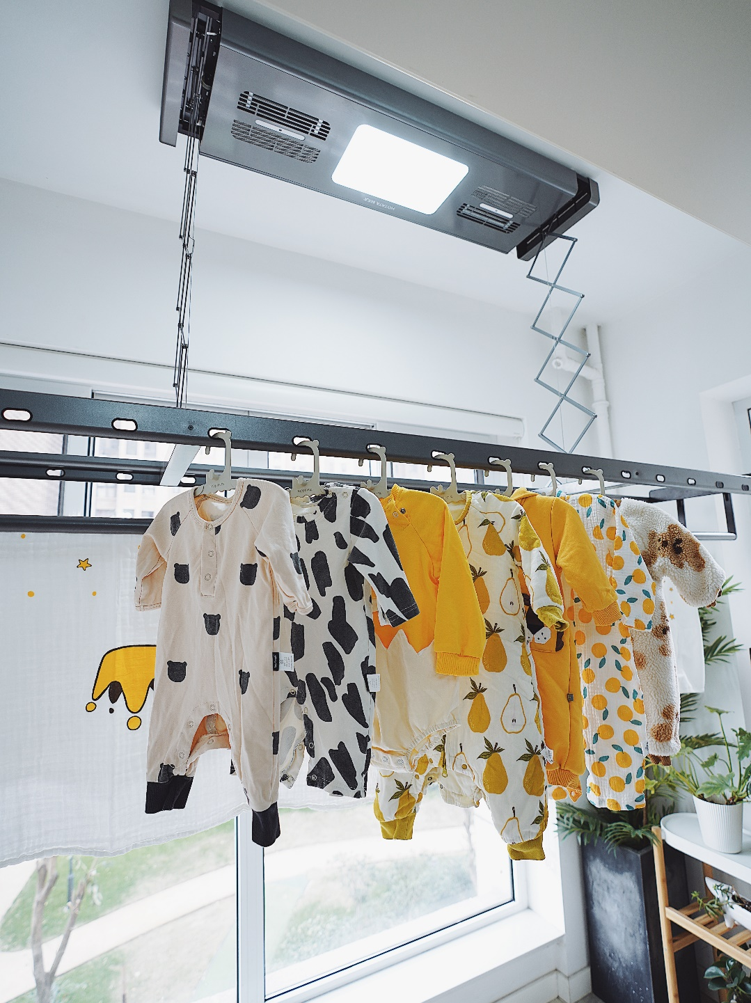 事實上,電動晾衣架不僅只有自動升降的功能,電動晾衣架還具有:照明、風干、熱風干燥、消毒等非常實用的功能。