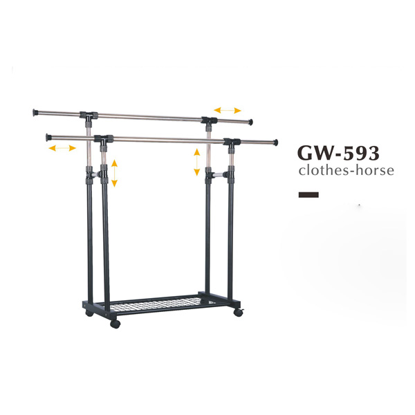 這款產品相對于老款的GW593而言,功能上亦有所突破。除了完全保留老款產品的功能以外,還在兩端額外增加了兩個可折疊的曬晾架。大家可別忽視了這個小小曬晾架的作用哦,因為它是以多管組合的方式形成的,當它展開時,以每個單桿曬晾2雙襪子或一張毛巾計算,這兩個小小的曬晾架就可以晾曬16雙左右的襪子或8張條毛巾左右哦,同時也可以放置一些重量相當的鞋帽物品。重要的是當你不使用時還可以完全收起,完全不會增加使用空間。