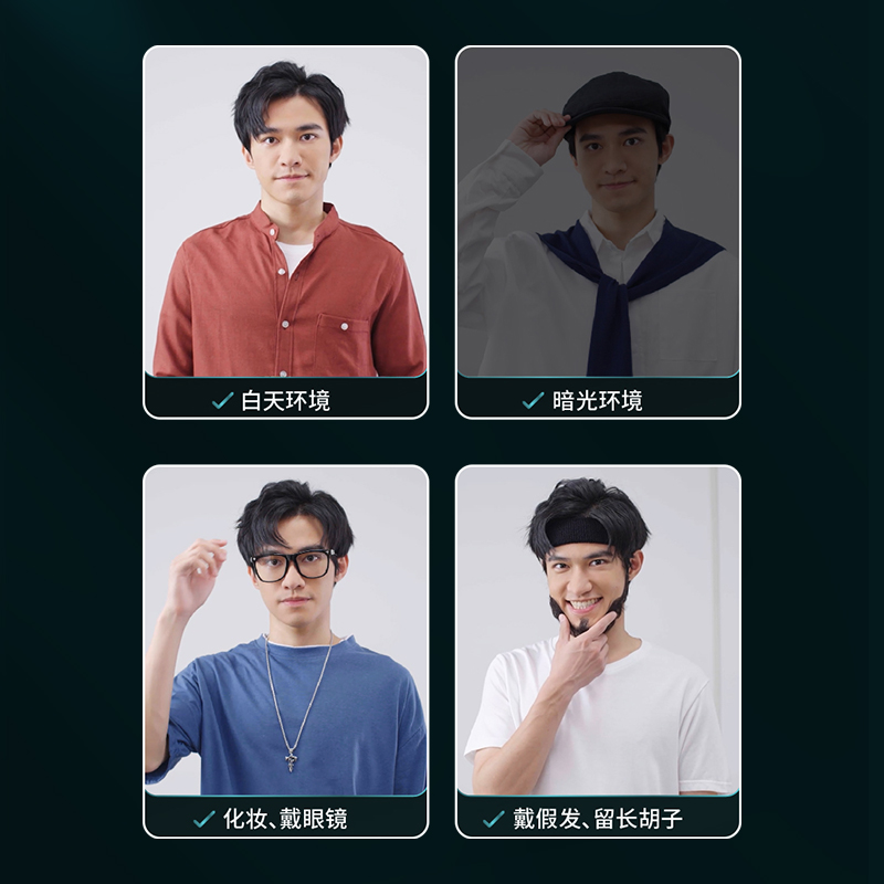 即使戴眼鏡,變換造型、戴帽子等也不會受到干擾,人臉識別模組中的攝像頭在暗光條件下也能準確捕捉面部信息,快速完成人臉識別。