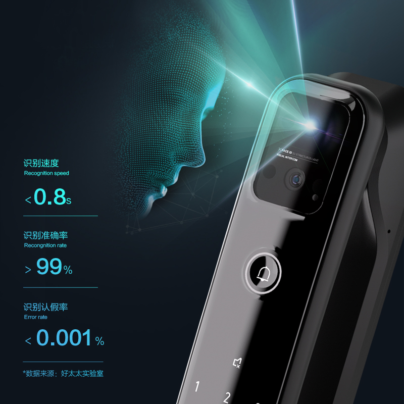3D結構光人臉識別 | 4寸IPS高清彩屏 | 161°超廣角貓眼